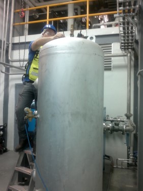 El alcance de los servicios consiste en la aplicación de los métodos líquidos penetrantes en las soldaduras de boquillas y (ut) ultrasonido industrial y medición de espesores, en los puntos de intersección de un cuadriculado de 200 mm x 200 mm. así como; partículas magnéticas en cordones circunferenciales de la unión cuerpo tapa y la elaboración de la carpeta técnica.